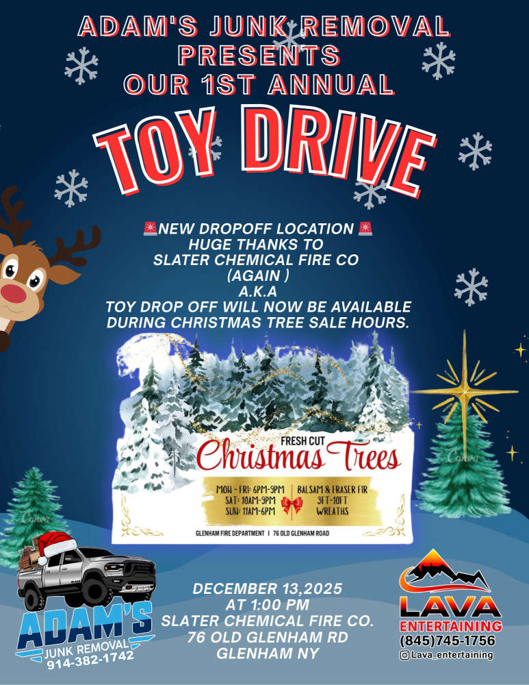 JOIN TEAM K104 ON SATURDAY (DECEMBER 13TH) FROM 1PM-3PM AT SLATER CHEMICAL FIRE COMPANY ON OLD GLENHAM ROAD IN BEACON FOR ADAM'S JUNK REMOVAL'S TOYR DRIVE AND DISTRIBUTION EVENT!
